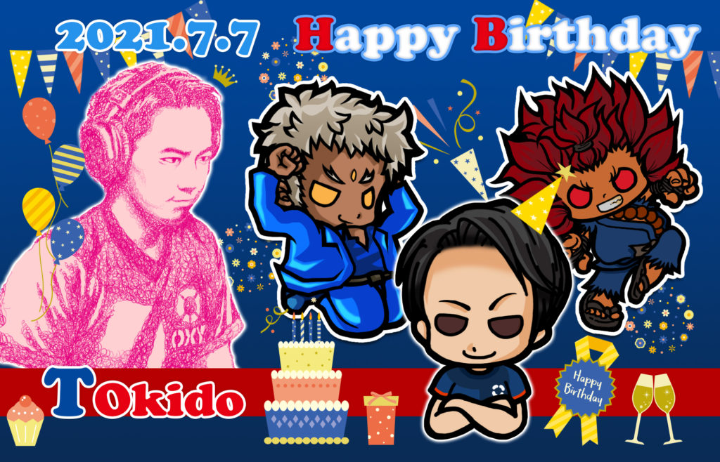 ALLイラスト SFV デフォルメ プロ選手 ときどさんのお誕生日👏🏼 beams95 4年 ago ハピバースデ~🎉ときどさん🎁 7/7七夕とトパチャンの真っ最中だった日試合を見守る中、これがまたなかなか終わらない!ので翌日になってしまう前に直前にお祝いイラストを上げました✨ ときどさんTwitter:@tokidoki77ハピバースデ~🎂🎁🎺